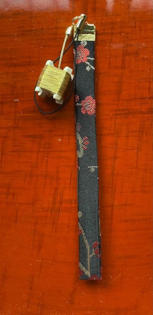 尚、この品物は携帯ストラップとして以前に創作し販売していました。この度、手首に入るストラップに仕上げ、携帯ストラップや、がま口、カメラ、カバン、パスケース等に幅広いアイテムとして販売する事となりました。