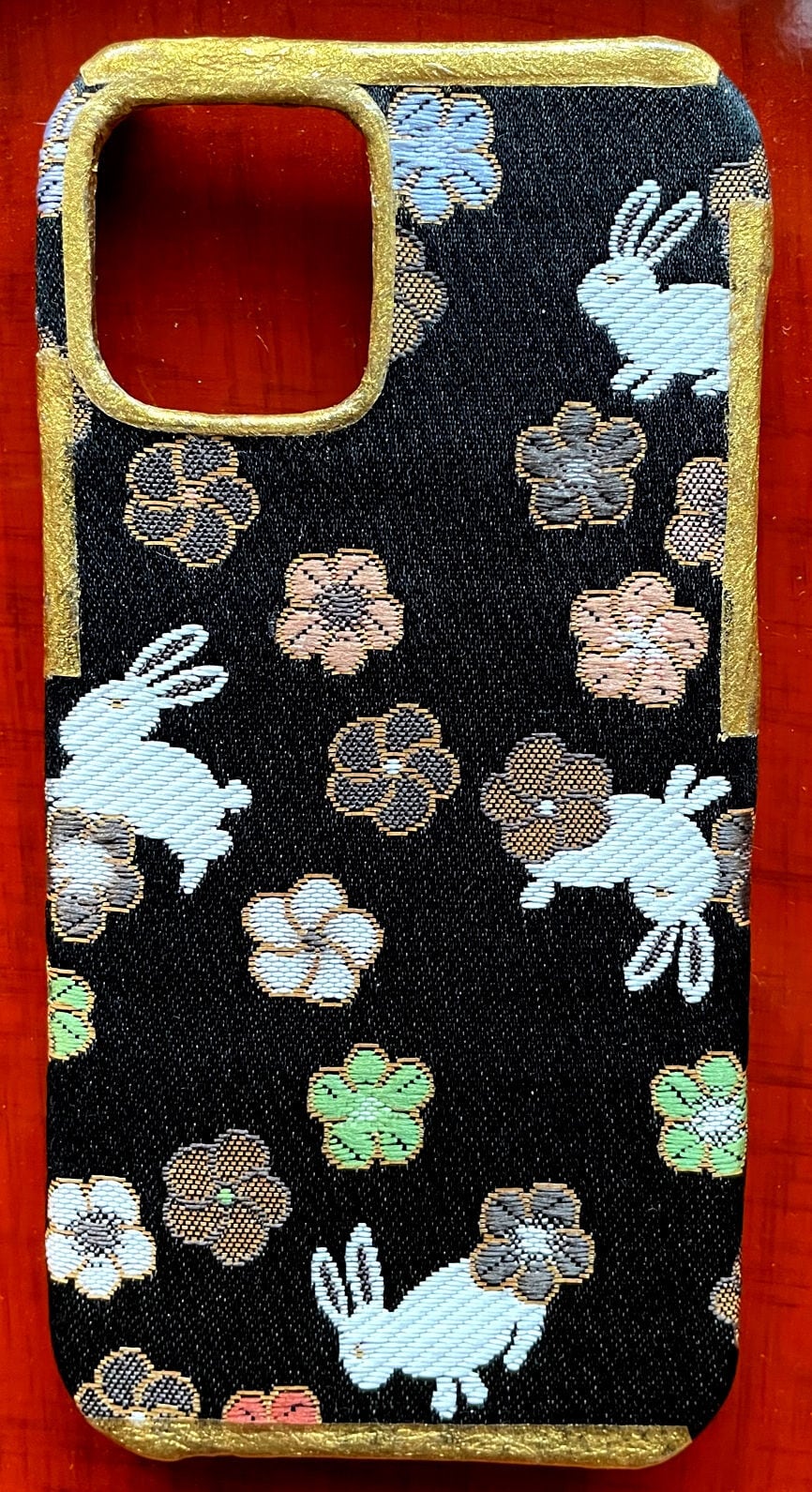 西陣織スマホケ-ス/うさぎと桜【対応機種 iPhone12/12pro】
