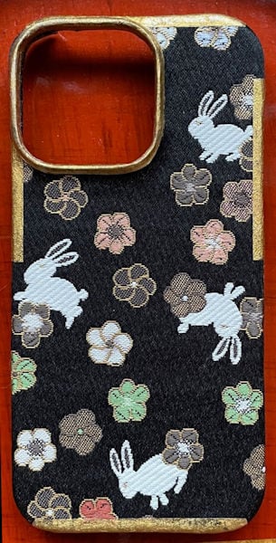 西陣織スマホケ-ス/うさぎと桜【対応機種 iPhone14promax】